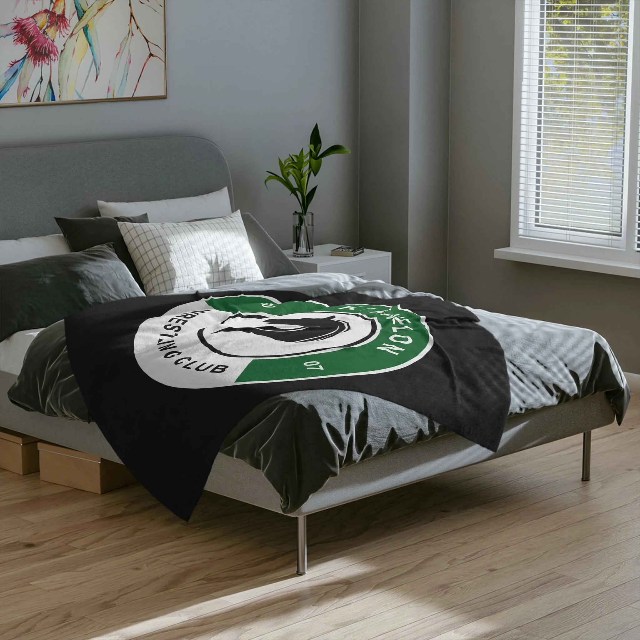 Wrap yourself in quiet team pride with this velveteen microfiber blanket. Brushed plush fibers feel silky against skin while the bold green-and-white club emblem holds its sharp contrast on a deep black field. It’s the kind of throw you reach for after practice, drape over the couch during game night, or bring to an outdoor meet when the wind starts to bite. Lightweight but warm, the blanket folds down small in a gym bag and still reads like your team’s badge of honor when spread out. The stitched hem and vivid one-sided print keep the crest centered and crisp through washes and seasons — a familiar comfort that carries the quiet confidence of athletes who grind together.